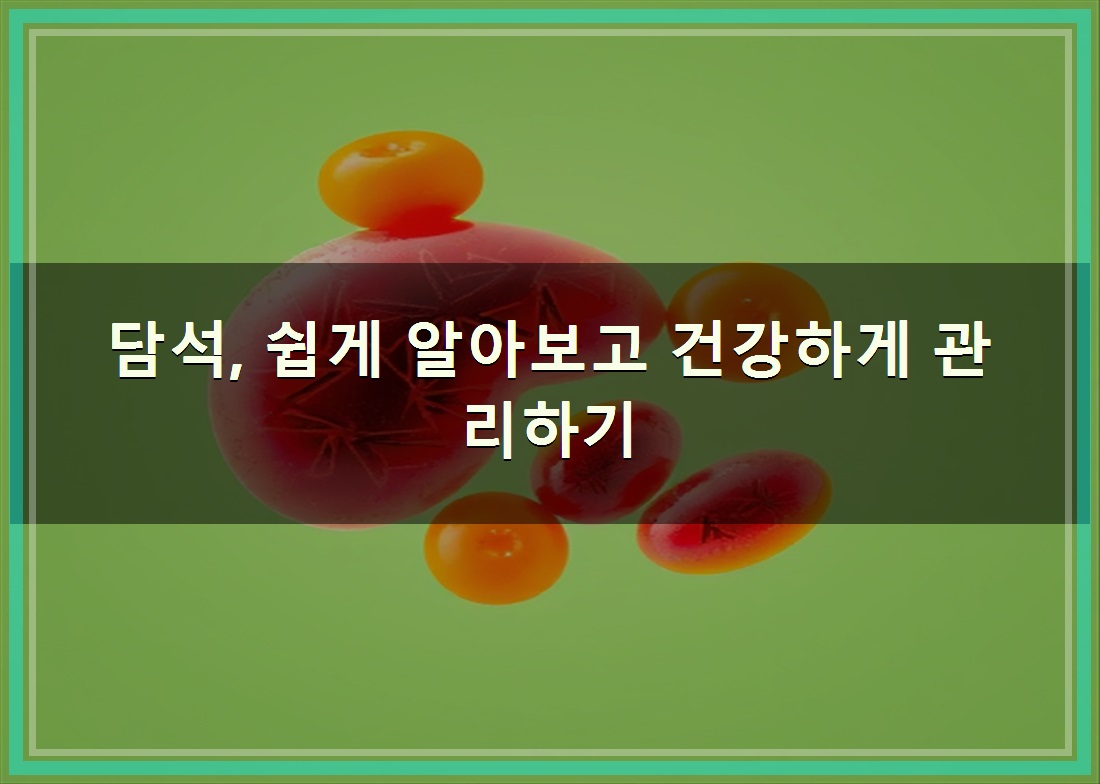 담석은 잘못된 식습관이나 비만, 유전적인 요인 등 다양한 원인에 의해 발생할 수 있음요. 초기에는 특별한 증상이 없을 수 있지만, 방치하면 복통, 소화불량, 황달 등 심각한 합병증을 유발할 수 있어 주의가 필요함.