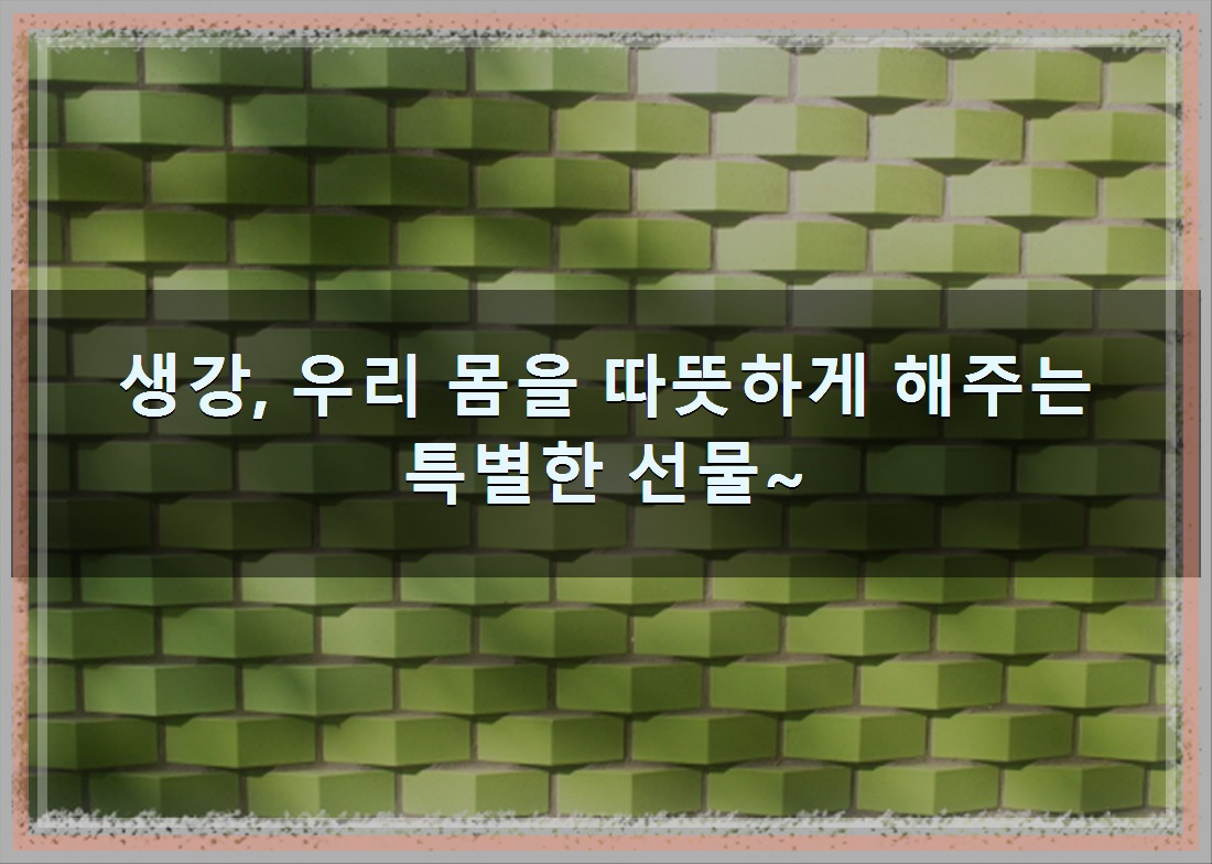 소개드린 내용은 생강, 우리 몸을 따뜻하게 해주는 특별한 선물~ 이였습니다. 부디 모두에게 이해에 도움이 될수있길 바랍니다.